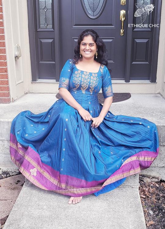 -upcycled silk from used sarees, that we transform in boutique dresses.