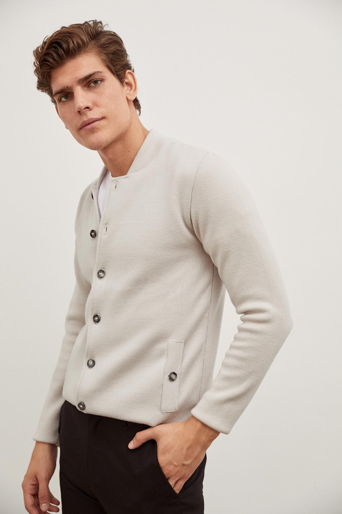 Ph : Silk Cotton Cardigan Shirt , Knit Turtleneck Top & Knit Trousers, Wool Bomber Jacket.
