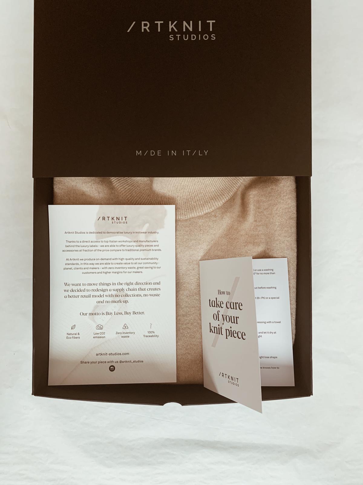 Since we want our customers to be aware of how to wash properly the products to make them last, we add to every box we ship the instructions on how to wash and take care properly of the garment, so the maintenance becomes easy.