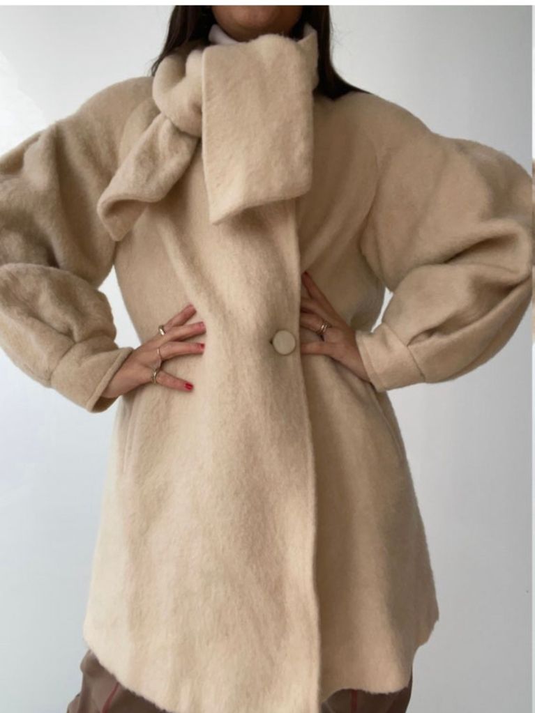 Ph: Cappotto in lana e abito con fiocco vintage; blazer #reworked, con maniche modificate per renderlo più moderno.