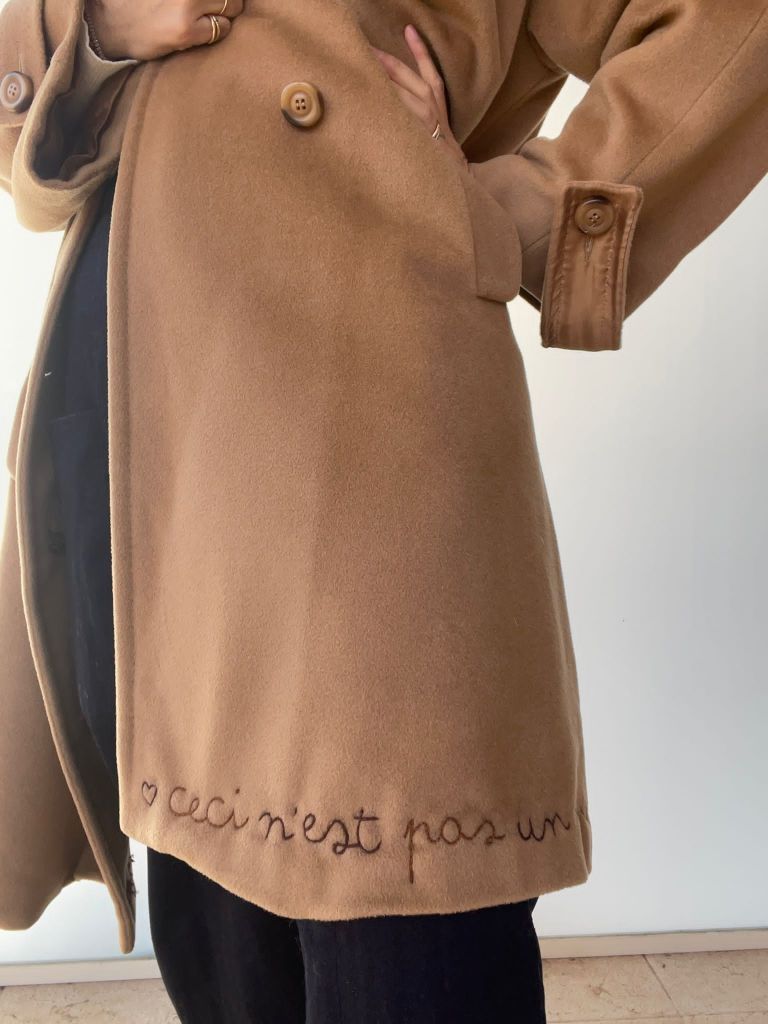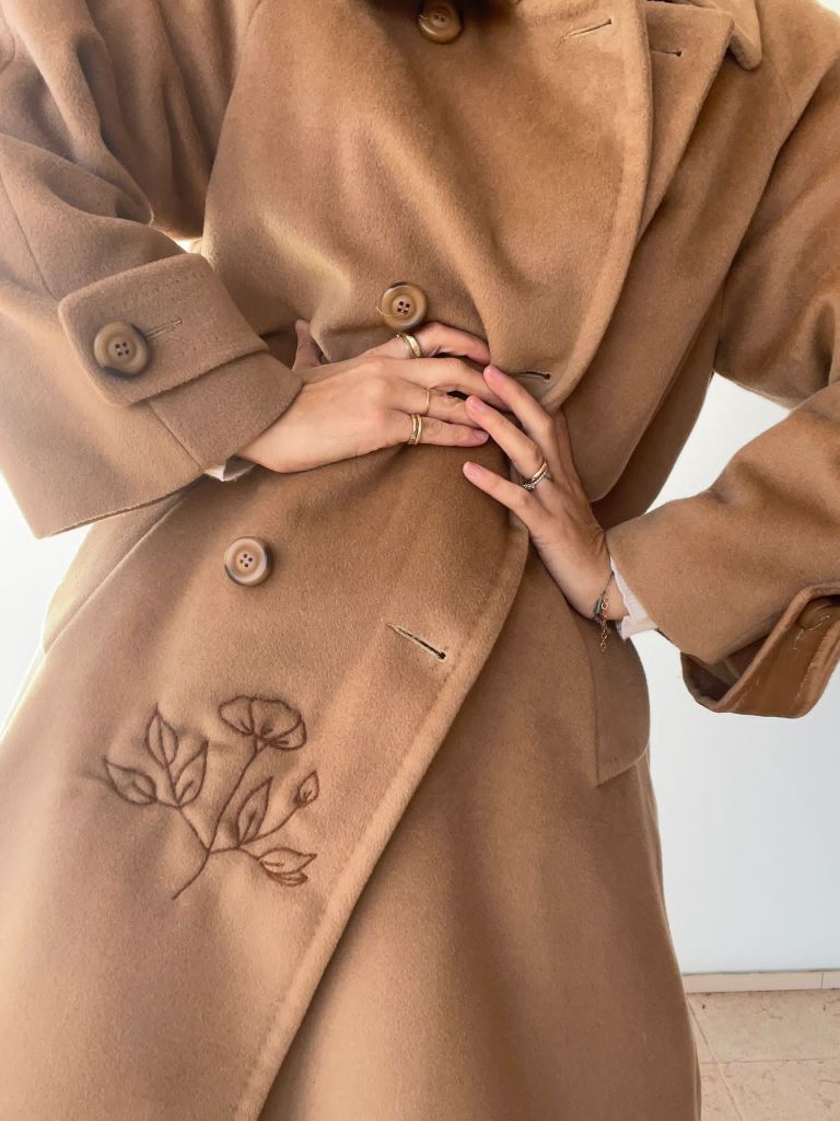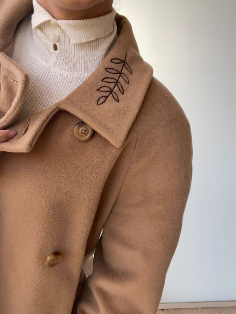 Ph: dettagli di un cappotto ricamato, parte del nuovo progetto di Vesto Circolare.